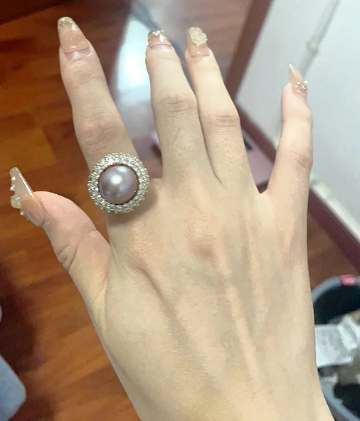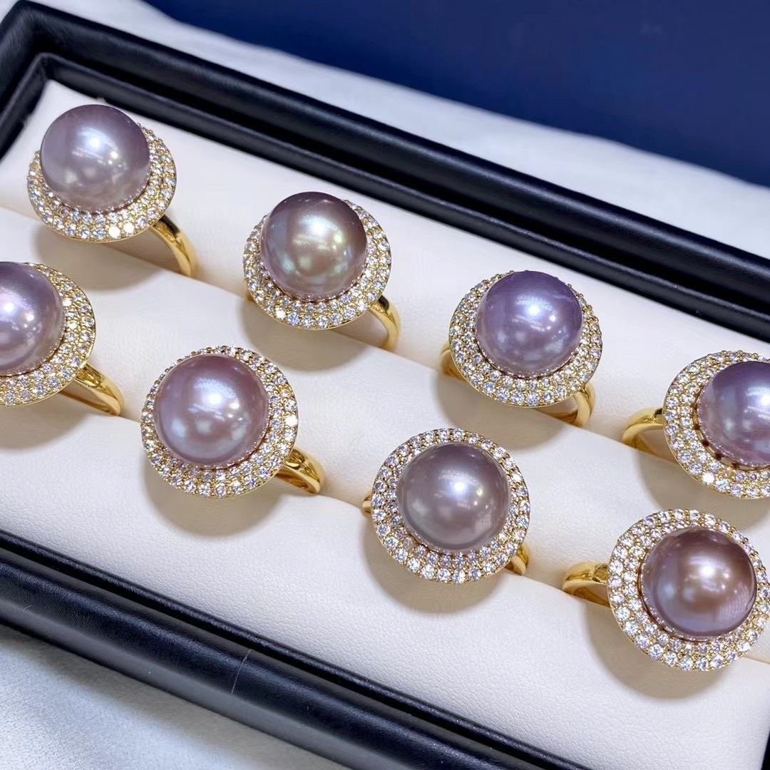 Freshwater pearl purple ring 13mm round bead 18K gold-coated ring holder quantity