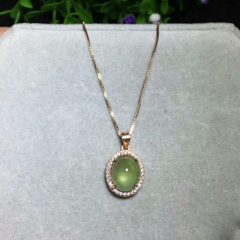 Natural prehnite pendant S925 sterling silver necklace quantity