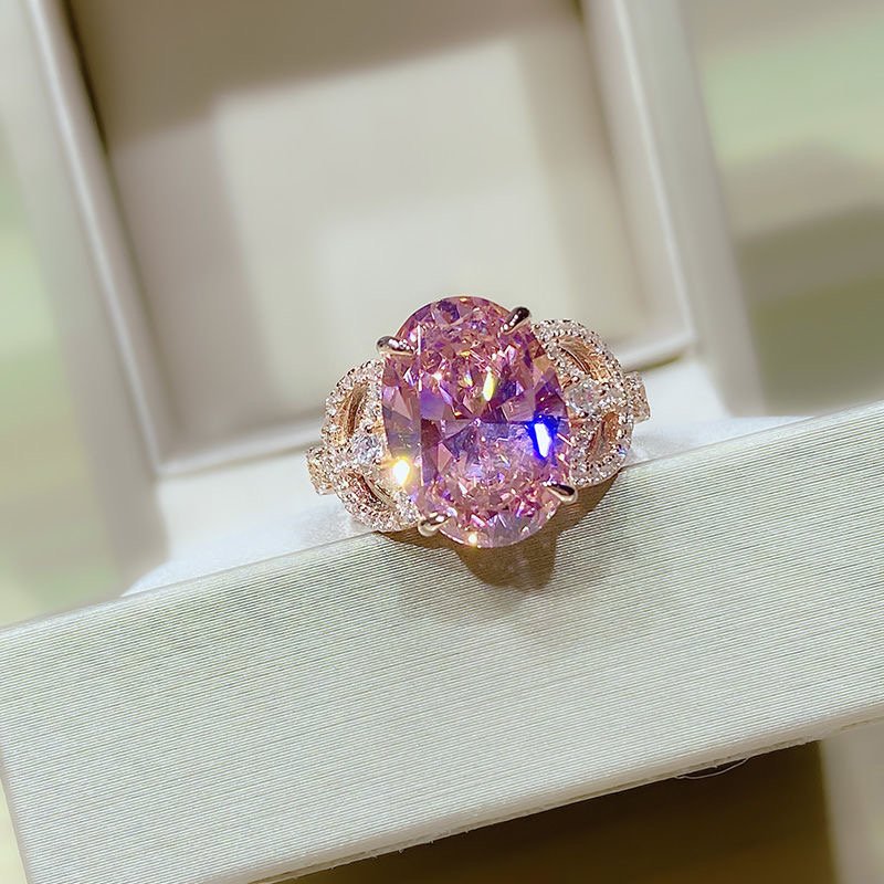 Pink diamond S925 sterling silver ring plated with rose gold quantity